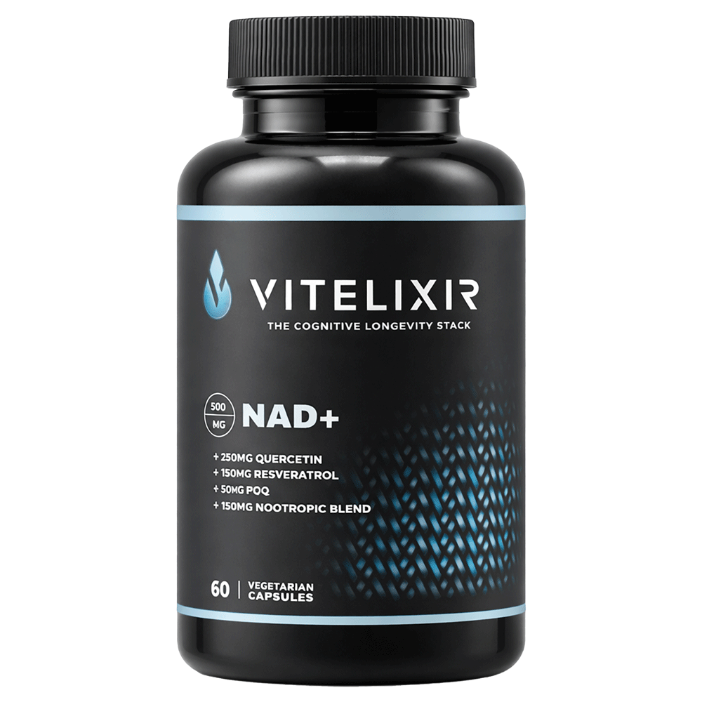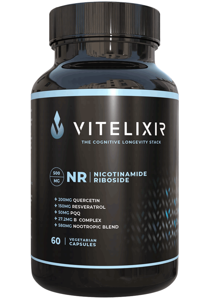 VITELIXIRNicotinamide Riboside The Healthy Ageless Stack Designed By Biohackers For Biohackers Discover Your Potential AGELESS FORMULANR 500 MgQuercetin 200 MgResveratrol 150 MGPQQ 50 MgB Complex 27 MgNootropic Mushroom Blend 580 Mg Discover Longevity